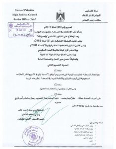 تعميم رقم 20 لسنة 2019 المجلس الأعلى للقضاء غزة